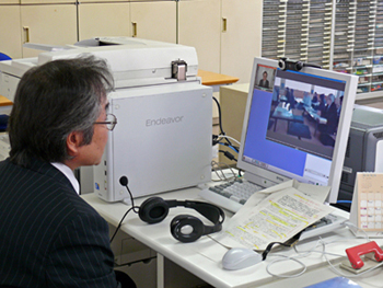 ※写真中央に、中継用のビデオカメラとパソコンがセッティングされている。