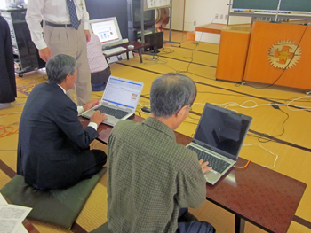そこで、今回の研修会の中で、参加者に実際にパソコンを操作してもらい、マンツーマンで操作方法等をコーチする時間を設けるなど「IT研修」を兼ねて行いました。